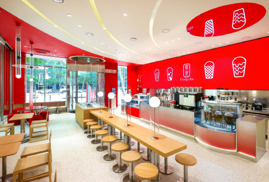 선릉역점은 약 50평 총 89석 규모로 매장은 공차를 상징하는 레드와 타피오카 펄을 컨셉으로 꾸며졌다.