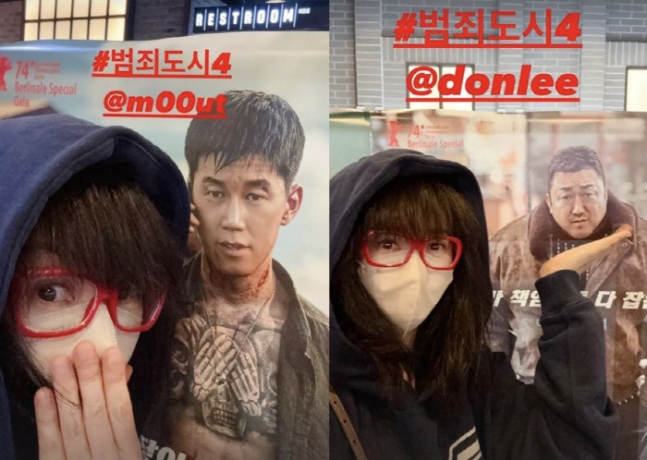 특히 친분이 있는 마동석과 김무열의 포스터 앞에서 두 사람을 응원하기도 했다.