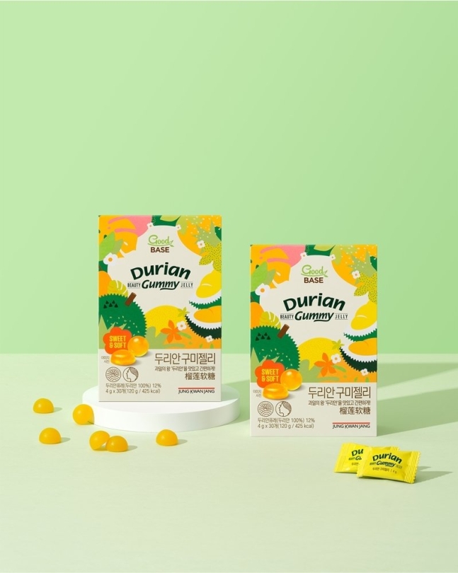 정관장은 과일의 제왕으로 불리는 두리안을 맛있고 간편하게 줄길 수 있는 '굿베이스 두리안 구미젤리'를 출시했다고 29일 밝혔다.
