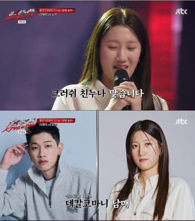 이채미와 노브의 대결이 시작됐다. 노브는 "크러쉬 누나"라고 자신을 소개했다. 노브는 "여기 나오는 걸 고민하고 있었는데 크러쉬가 '고민하지 말고 나가서 1등 하고 와'라고 했다"고 고백했다.